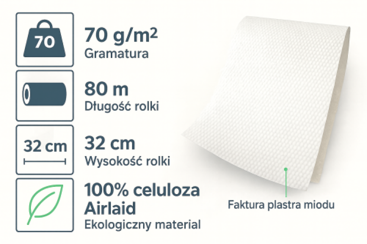 - Wysoka chłonność: Materiał Airlaid zapewnia doskonałą absorpcję, idealny do osuszania skóry i włosów.