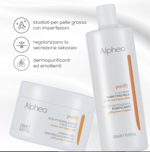 Alphea Purify Sebum Rebalancing Face Cream to zaawansowany krem do twarzy, który skutecznie reguluje i równoważy gromadzenie się sebum w powierzchniowych warstwach skóry, zapewniając jej świeżość, promienność i jedwabistą miękkość. Ten profesjonalny produkt, należący do linii Purify, został stworzony z myślą o intensywnym oczyszczaniu i odnawianiu naskórka. Krem znacząco redukuje efekt nadmiernego świecenia, charakterystyczny dla cery tłustej i skłonnej do niedoskonałości.