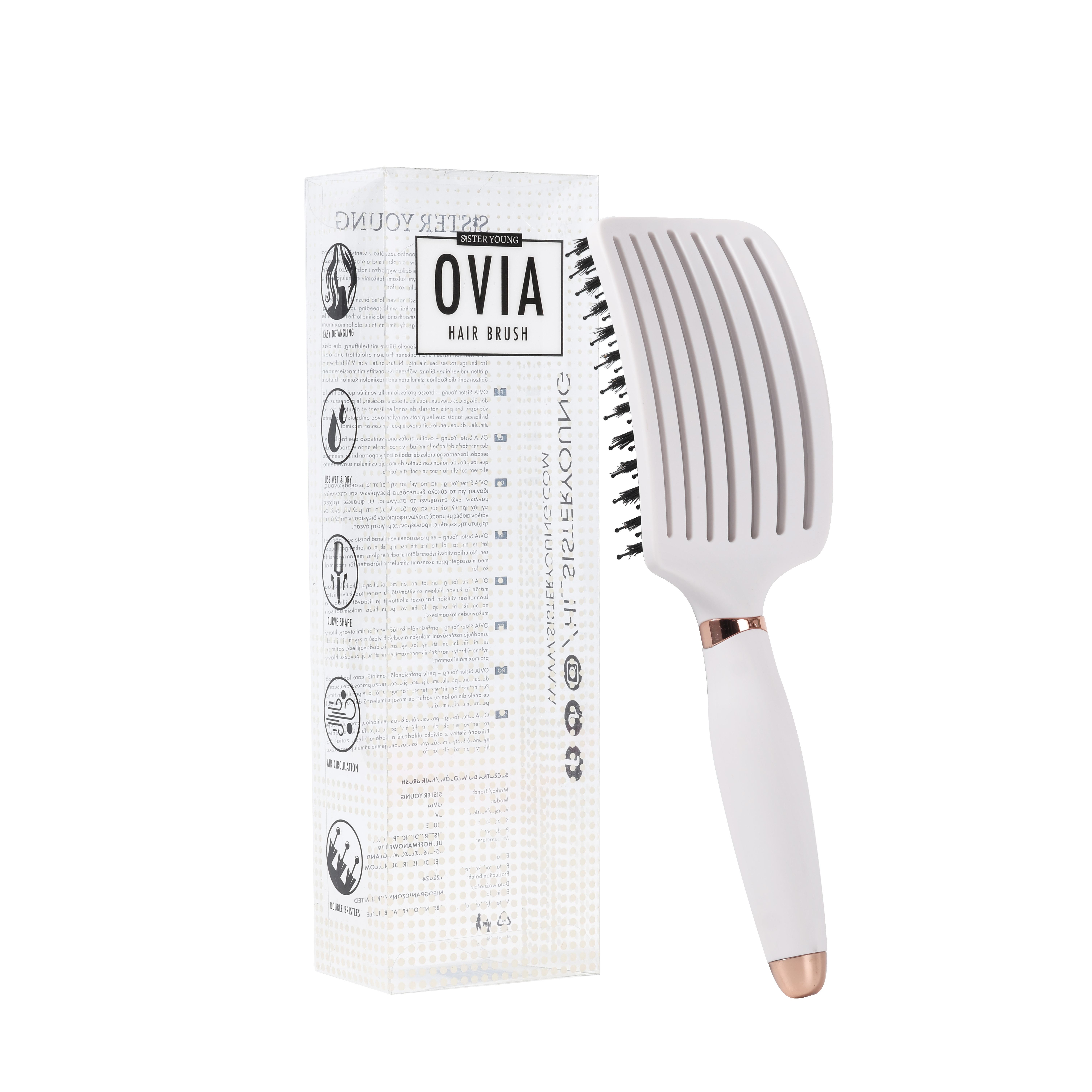 Szczotka OVIA BV marki Sister Young to profesjonalna paddle brush z naturalnym włosiem dzika i kolcami nylonowymi z kulką.