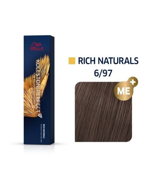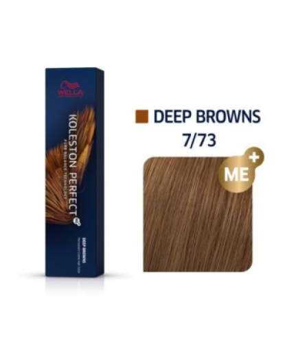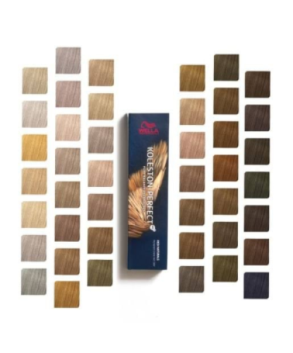Paleta kolorów Koleston Perfect Me+ obejmuje szeroką gamę odcieni – od chłodnych brązów i blondów po ciepłe, karmelowe tonacje – oferując nieograniczone możliwości koloryzacji. Farba skutecznie kryje siwe włosy, zapewniając zdrowy wygląd, głębię koloru i wyjątkowy połysk.